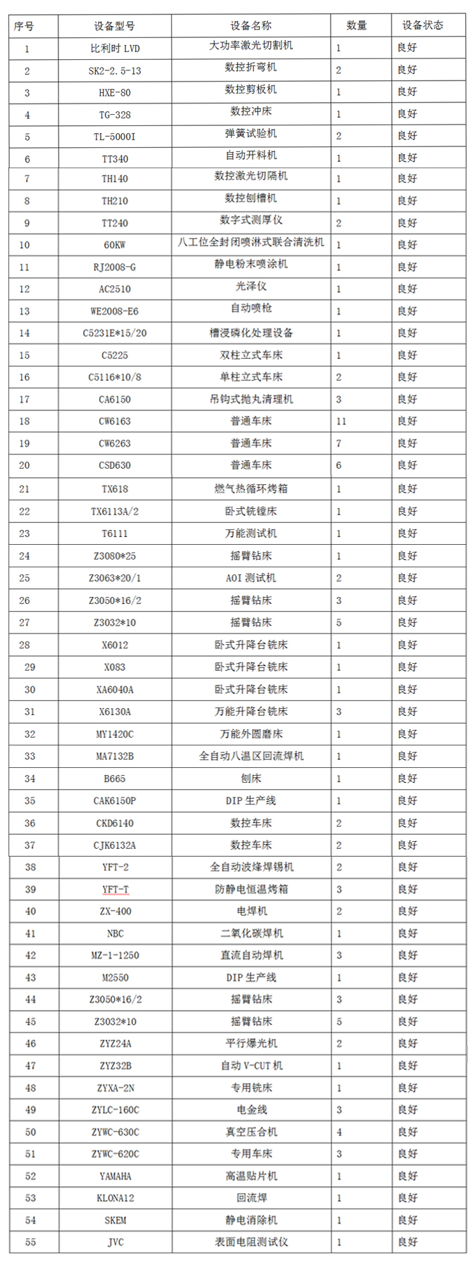 為了提高企業(yè)的產(chǎn)品競(jìng)爭(zhēng)能力,在企業(yè)建立以來,不斷進(jìn)行設(shè)備投入,使企業(yè)的生產(chǎn)能力不斷提高。具體見主要設(shè)備一覽表及附圖。