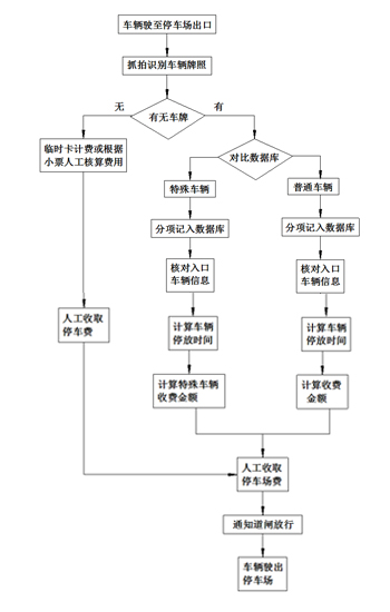 2、 入口車輛有牌照,車牌識(shí)別系統(tǒng)自動(dòng)抓拍車輛的的圖像并識(shí)別出車牌號(hào),然后通過(guò)檢索中心數(shù)據(jù)庫(kù)得出車輛類別,判斷該車屬于特殊車輛(如貴賓車,月租車,儲(chǔ)值車)還是普通車輛,然后記錄到中心數(shù)據(jù)庫(kù)中。如果非滿位,閘機(jī)放行,同時(shí)記下車輛進(jìn)入時(shí)間。